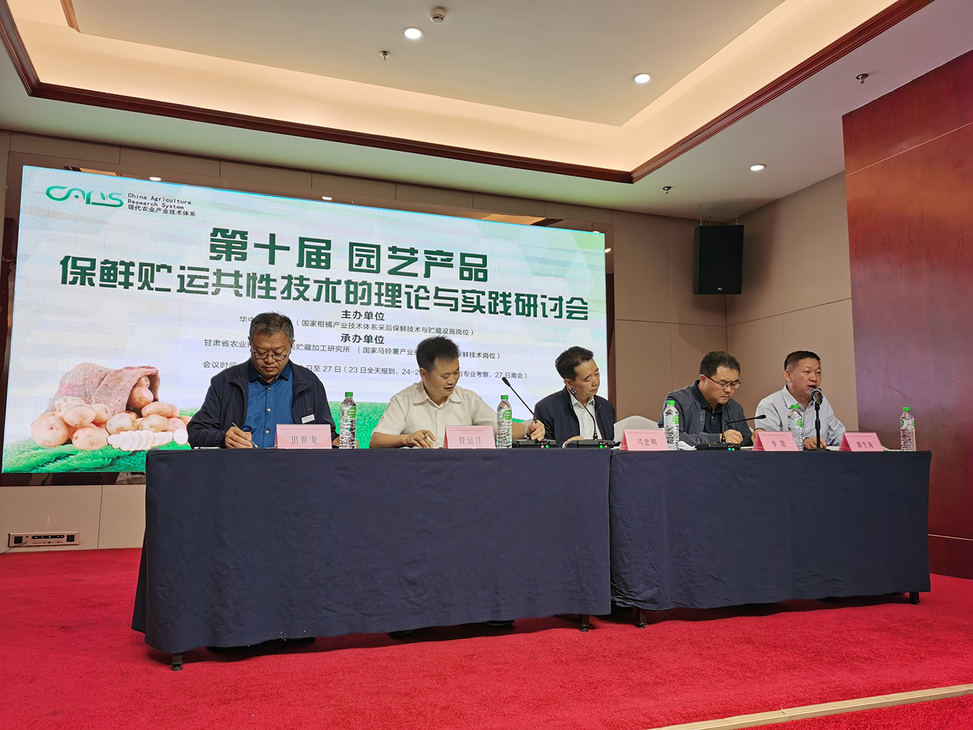 本届会议由马铃薯产业技术体系贮藏保鲜技术岗位科学家田世龙研究员所在团队承办,来自柑橘、苹果、梨、桃、葡萄、香蕉、荔枝龙眼、大宗蔬菜、马铃薯、木薯、甘薯、西甜瓜、中药材以及“十四五”现代农业产业技术体系新增的猕猴桃、花卉、枣、山药、樱桃等15个体系的27名岗位科学家及团队核心成员,以及江西绿萌科技控股有限公司企业代表等40余人参加本次会议。甘肃省农业科学院院长马忠明研究员,甘肃农业大学副校长毕阳教授,甘肃省农业科学院农产品贮藏加工研究所书记胡生海出席了本次会议。