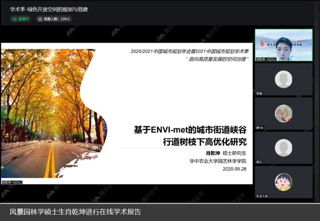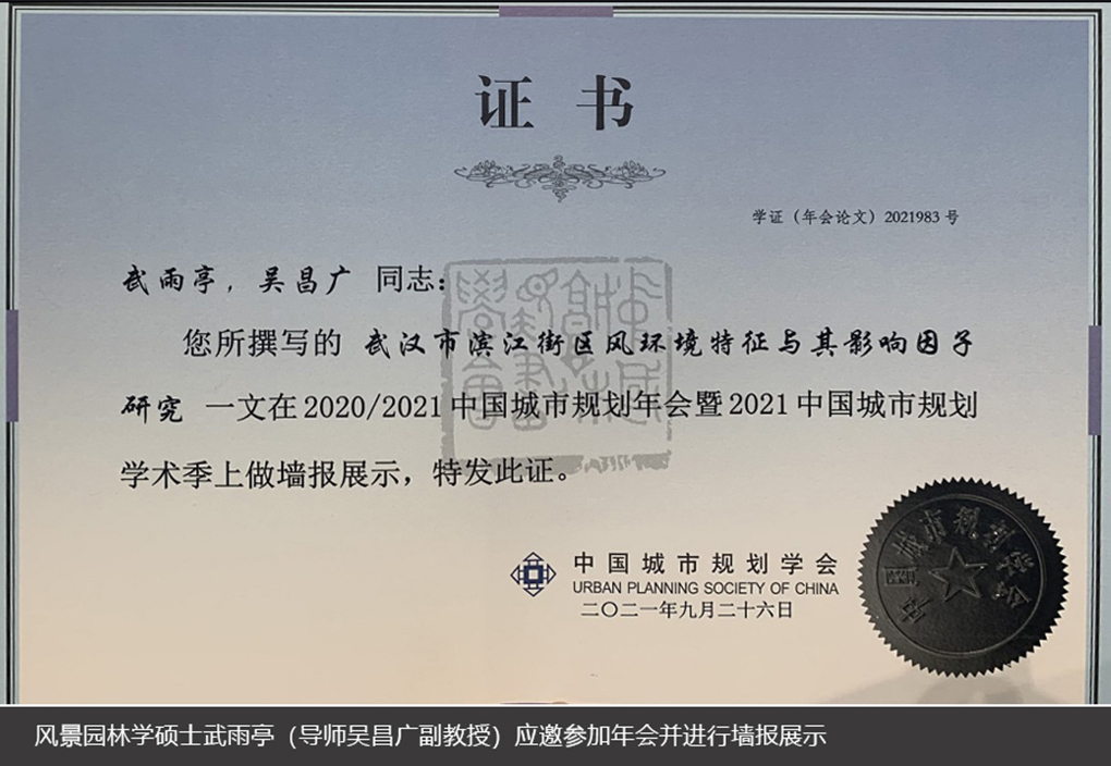 由中国城市规划学会、成都市人民政府主办的2020/2021中国城市规划年会暨2021中国城市规划学术季于2021年9月25-30日在成都召开,会议主题为“面向高质量发展的空间治理”。本届年会共举行了90场精彩的学术对话和特别对话,集中展示规划领域最新研究成果。学术季共收到来自全球的6875篇学术论文,其中434篇优秀论文在20个专题会场进行宣讲,824篇论文以墙报的方式在年会期间集中展示。ok138cn太阳集团3名风景园林学子应邀分别参加了线上学术报告和线下墙报展示。