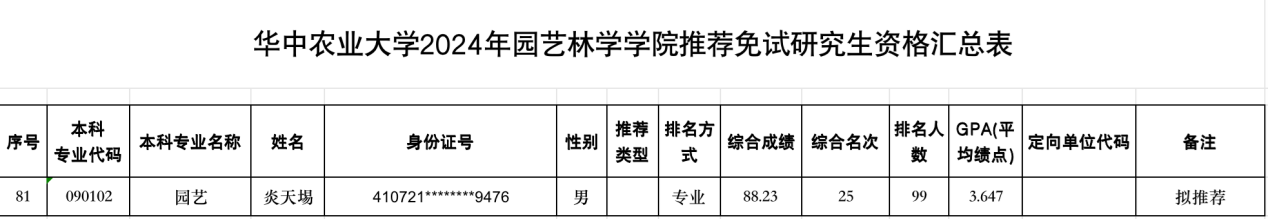 为进一步加大支持一流学科和专业的建设力度,根据学校最新下达的2024年学院推免指标,我院20级园艺专业新增1个推荐免试攻读研究生名额。现将我院新增拟推荐免试攻读研究生的名单公示如下:
