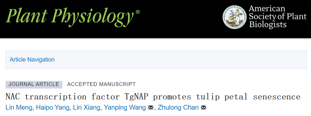 近日,ok138cn太阳集团529郁金香研究团队在Plant Physiology上发表了题为“TgNAP promotes petal senescence through regulating salicylic acid and removing reactive oxygen species inTulipa gesneriana”的研究论文,揭示了TgNAP通过双重调控SA的合成和H2O2的积累,从而促进郁金香花瓣的衰老。