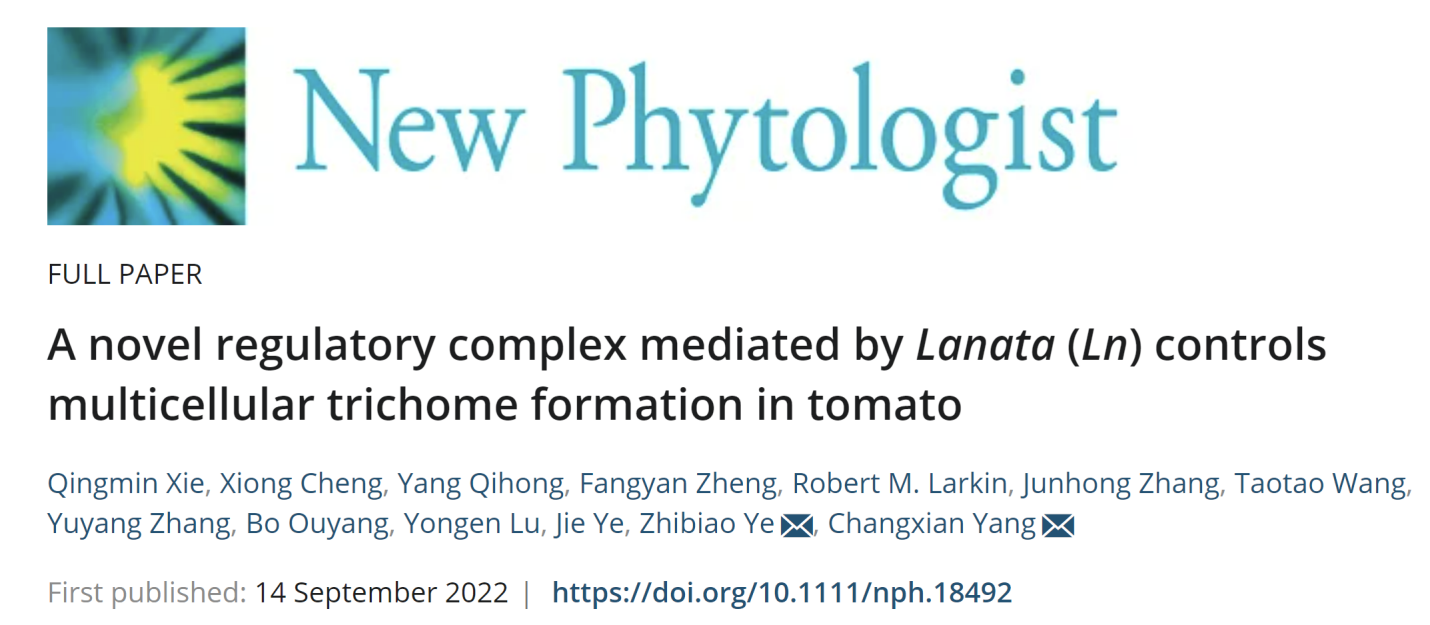 New Phytologist |ok138cn太阳集团叶志彪研究团队在番茄表皮毛调控机制方面取得新进展