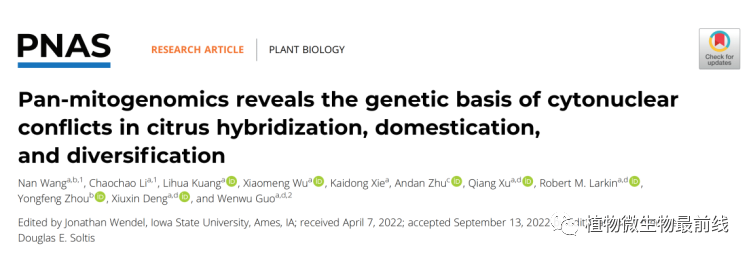 王楠(邓秀新教授课题组博士毕业生,目前是中国农业科学院深圳农业基因组研究所博士后)、李超超(郭文武教授课题组在读博士生)为共同第一作者;郭文武教授为通讯作者。邓秀新院士、徐强教授、Robert Larkin教授等参与了研究工作;中国农业科学院深圳农业基因组研究所周永锋研究员在课题设计、实施和论文修改方面提供了重要指导,中国科学院昆明植物研究所朱安丹研究员给予了具体的数据分析建议。中国热带农业科学院黄三文研究员、内布拉斯加大学林肯分校Jeffrey Mower教授和科罗拉多州立大学Daniel Sloan教授提供了重要指导意见和建议。该研究受到国家重点研发计划、国家自然科学基金重点和重点国际合作、湖北洪山实验室等项目资助。