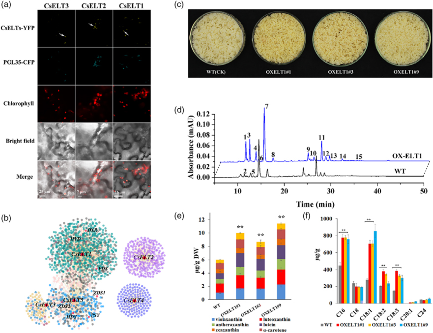 图4. CsELT1参与类胡萝卜素和脂质的形成