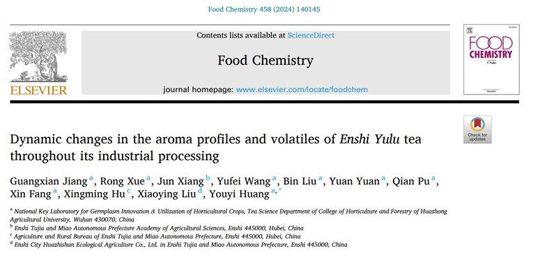 我院茶学系2024届硕士研究生江广贤为论文第一作者,黄友谊教授为论文通讯作者。该研究得到了国家重点研发计划和湖北省重点研发计划项目资助。