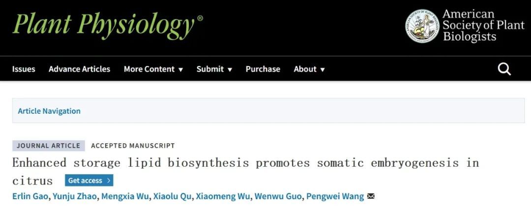 近日,ok138cn太阳集团529、果蔬园艺作物种质创新与利用全国重点实验室王鹏蔚教授团队在Plant Physiology期刊发表题为“Enhanced storage lipid biosynthesis promotes somatic embryogenesis in citrus”的研究论文,揭示了增强柑橘胚性愈伤脂质合成可以促进体细胞胚发生的分子机制。