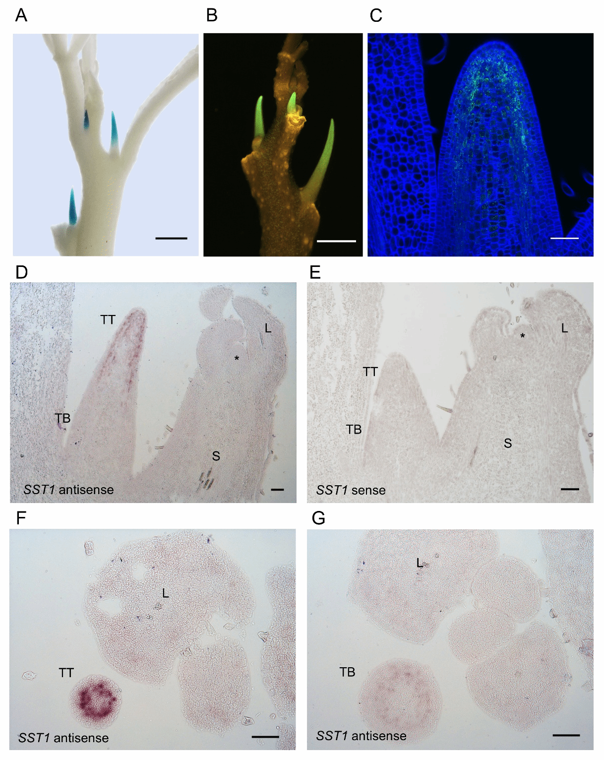 4.SST1同源基因在多个物种的枝刺中保守表达