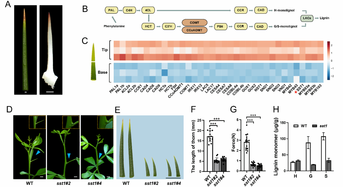 1.鉴定到调控枝刺尖端硬化的关键基因SST1