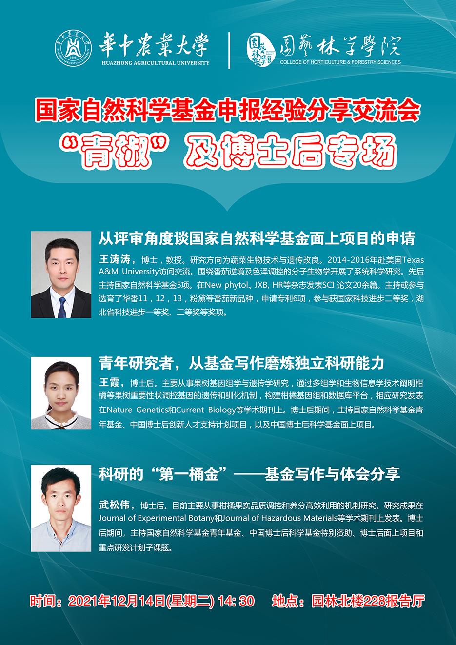 国家自然科学基金申报经验分享交流会---“青椒”及博士后专场”