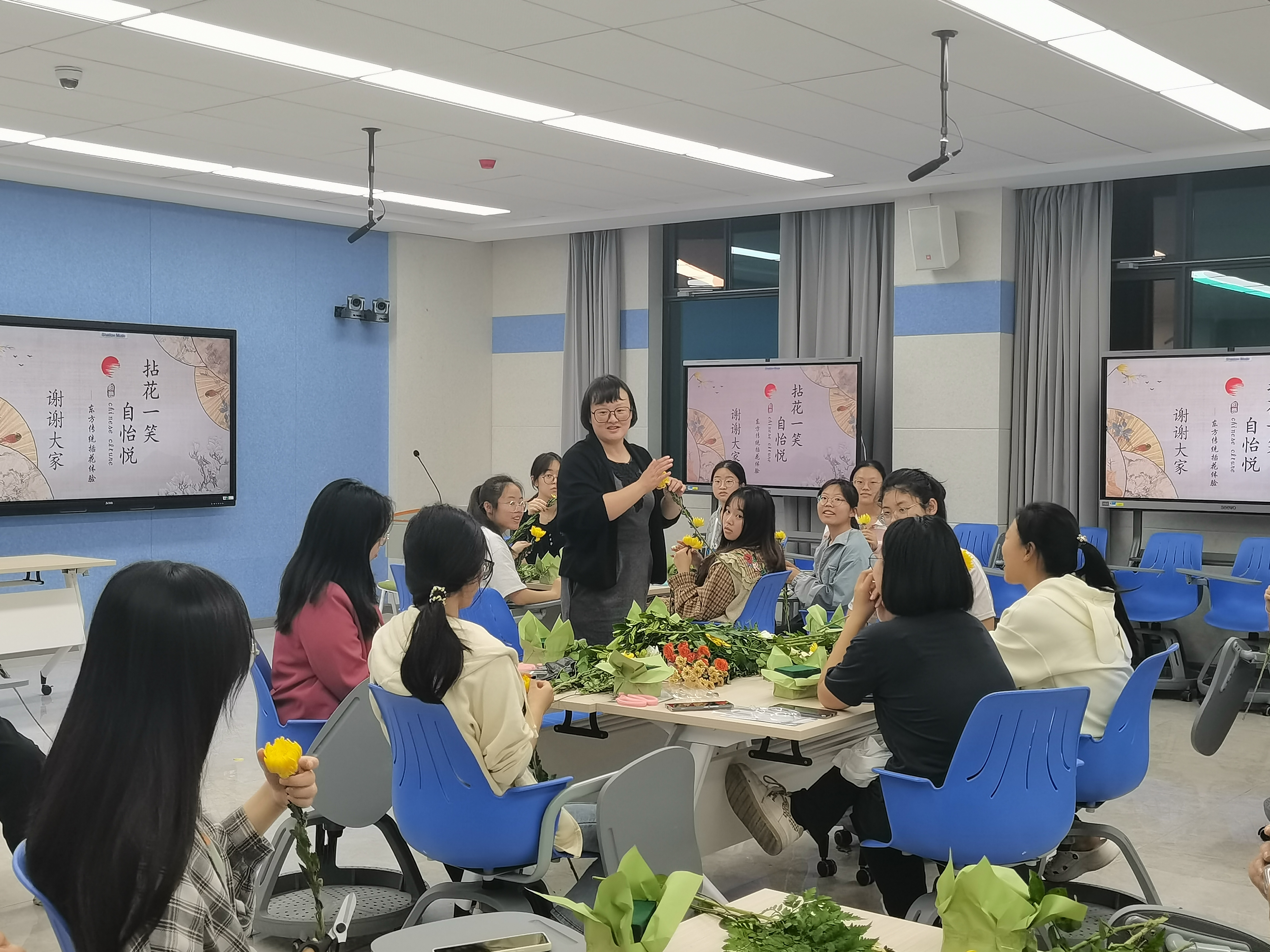 王媛媛带领学生开展东方插花体验