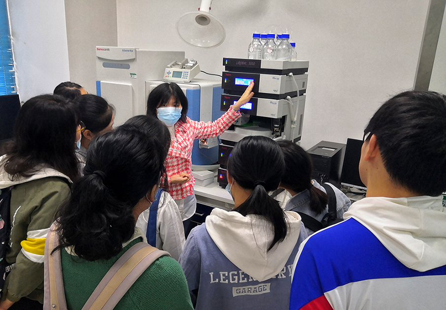为了响应学校的防疫要求,开放日参观分批次分模块有序进行。这样一来既降低了人员聚集,也提高了培训质量。首先,平台主任屈晓璐研究员介绍了ok138cn太阳集团529公共平台的构成,包括细胞生物学平台、代谢组学平台、感官评价平台、植物生化平台、植物生长平台、采后生物学平台和生物信息平台等7个子平台,同时介绍了它们的预约方式、使用方法和注意事项。随后,各位分平台的管理老师,带领不同批次的同学,顺次参观了平台的设备和设施。细胞平台的屈晓璐老师为大家讲解了多种光学成像系统和组织切片系统在细胞学研究上的应用及实验注意事项;代谢平台的仲林林老师和秦玉娇老师依次向大家介绍了各类气相色谱、液相色谱、气质联用仪、液质联用仪等仪器的工作原理、操作流程以及它们在物质的定性定量发挥的重要作用;植物生化、植物生长平台的石春梅老师介绍了非接触超声破碎仪、蛋白纯化仪和蛋白定量分析系统在核酸蛋白水平的分离和检测上的应用。整个平台介绍过程中,同学们纷纷针对自己感兴趣的仪器提出了一些问题和感受。