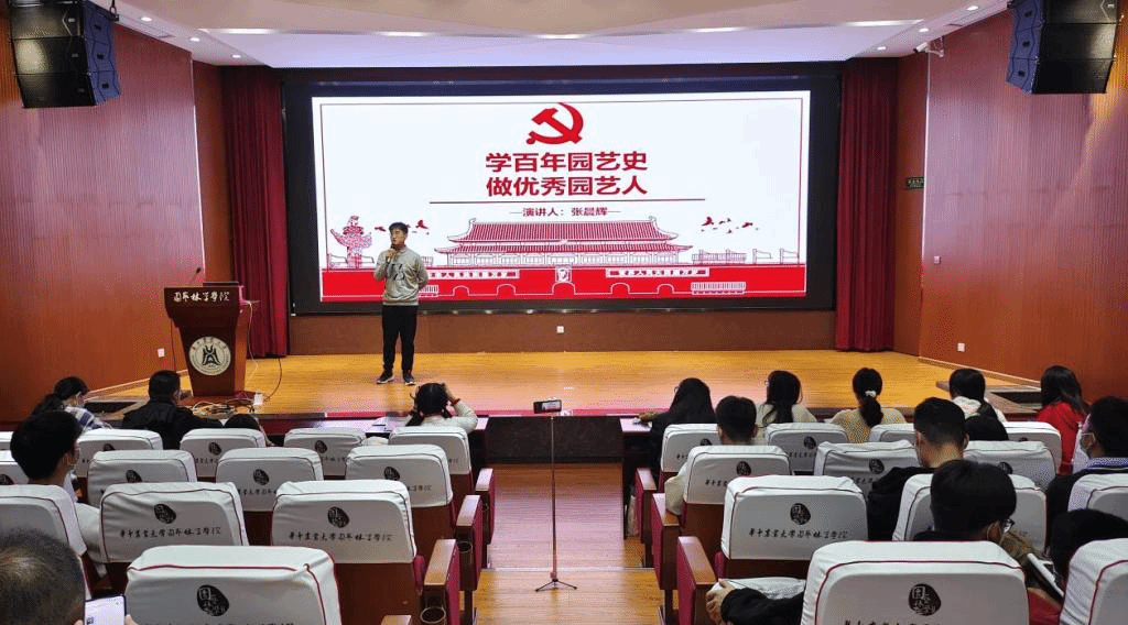 2021级风景园学研究生秦露筠介绍了ok138cn太阳集团的建校历史和坚持育人的优良传统。2021级果树研究生秦寅书用《牵挂》话剧诠释了ok138cn太阳集团“勤读力耕,立己达人”的价值追求,分享了受其鼓舞前往云南支教的故事与收获。2021级风景园林研究生刘晗通过讲述华农景园的历史和文化传承,引出如何做好景园人、华农人,“行之力则知愈进,知之深则行愈达”,以此践行华农人的使命。2021级蔬菜学研究生张晨辉以百年园艺史为切入点,分享了ok138cn太阳集团529无惧风雨,薪火相传的发展历程,以疫情当下,园林学子积极响应“春耕”号召为例,展现园林学子用所学知识、用一身力气践行华农人的担当与使命。2021级蔬菜研究生杨子萱讲述了章文才老先生对柑橘产业的巨大贡献,华农园艺人也始终继承着章老的精神,将科研成果转化为帮助农民脱贫致富的现实生产力,以学农之名,行兴农之长路,举国家之青年,振民族之力量。“七年西迁史,百载耕读魂”,2021级林学研究生李小惠带领大家从如今丰富多彩的校园生活,回到华农漫漫西迁、砥砺前行的时代,展现了华农人与祖国同命运、共进退、知农爱农、强农兴农的重要精神。