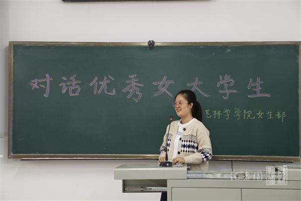 我院女生部组织的对话优秀女大学生活动于11月20日晚4:00至6:00在第三教学楼C101召开。景园1802班郝丁谊、园艺1802班魏乐妍、林学1801班曾亦妍受邀作为优秀女大学生代表进行大学学习生活上的经验分享。会上,女生部还为三位优秀女大学生代表和现场观众带来了精美的小礼品。