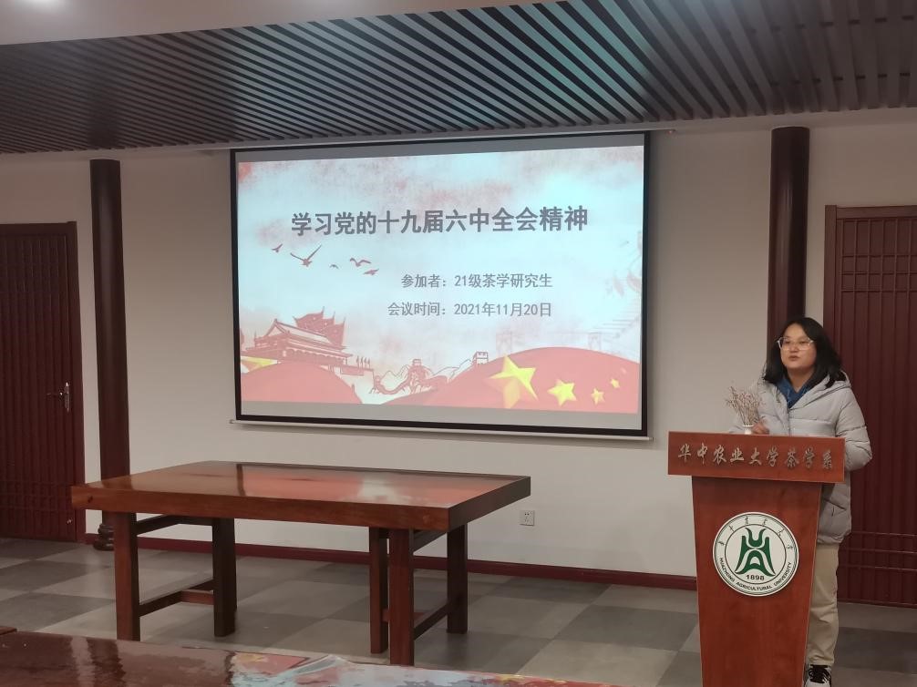 为深入贯彻学习党的十九届六中全会的重要精神,11月20日下午,21级茶学班于园林北楼耕读茶室召开学习党的十九届六中全会精神主题班会。