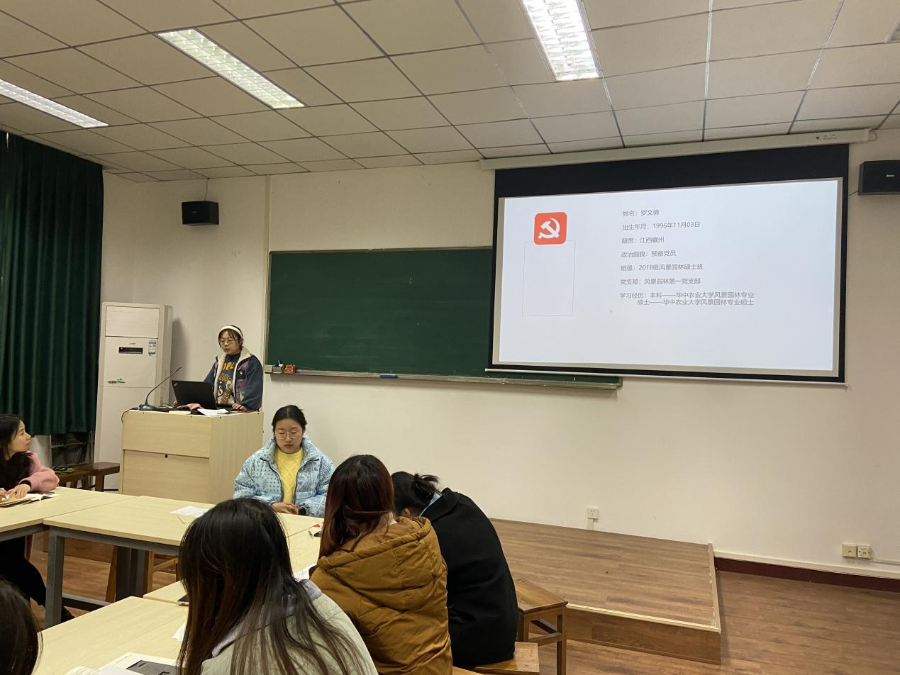 为了进一步丰富各位研究生同志的科研生活,引导大家向优秀的同志靠拢,培养党员身份荣誉感,学习刻苦钻研、努力奋斗的精神,在科研工作中起到表率作用,做一名合格的研究生党员,风景园林第一党支部于12月9号在景园楼309教室举办党日活动,活动主题为“一景一情一故事”,形式为交流分享会。本次党日活动邀请到了夏文莹、梁芷彤、王毅磊、余青怡四位优秀的硕士博士研究生分享他们与风景园林之间发生科研和生活故事。此次党日活动由副党支书唐与岑主持。