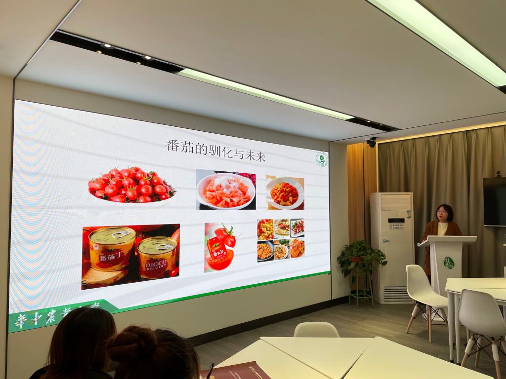 紧接着,尚乐乐同学带来了番茄的相关介绍,以趣味故事的形式,描述了番茄的形态以及生物学特性等相关内容,生动形象的介绍了番茄的驯化史以及之后的发展应用。同学们听的十分传神,现场学习氛围浓厚。