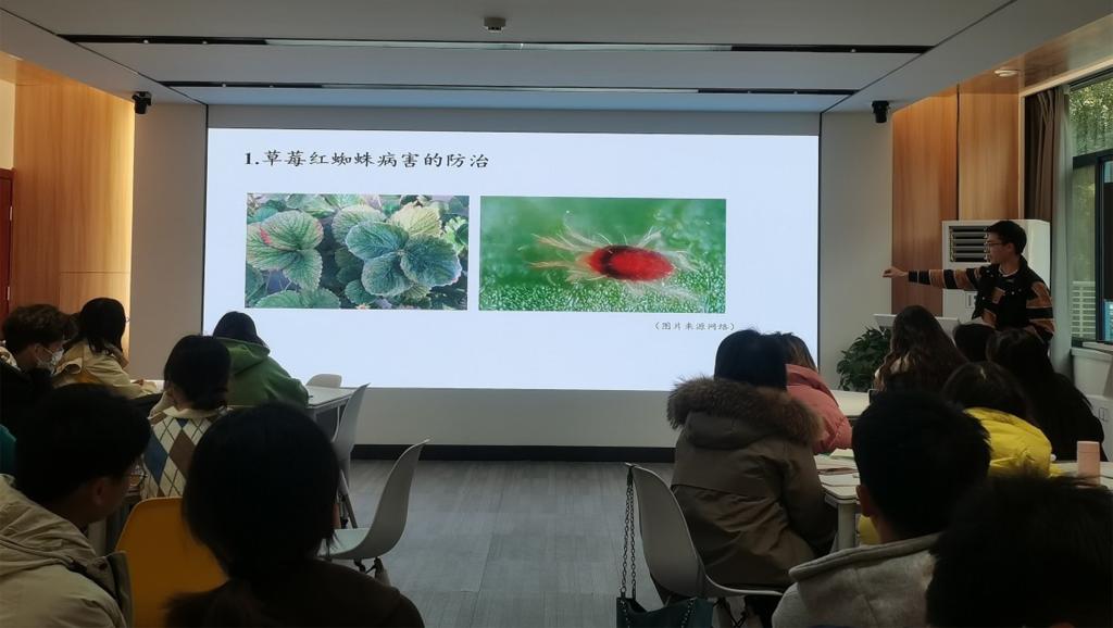 12月22日,学术社区活动——“水果们努力生活的一天”在园林北楼221虚拟仿真实验室举办,本次活动邀请了2021年国家奖学金获得者:王利洋、潘佳佳、卿美、曾译可、宋杰来分享他们的研究对象常见的病虫害以及相应的防治办法。