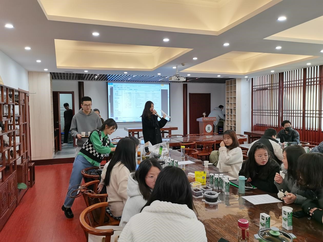 活动现场为同学们准备了焦糖奶茶、港式奶茶、热柠茶等5种奶茶的材料供同学们进行创意调配,在工作人员的指导下,同学们开始了奶茶的制作,通过茶底的选择、茶与奶的调配、配料的添加等步骤调配出了特色奶茶。调配完成后,同学们互相品尝奶茶,不时传来阵阵欢笑,奶茶不仅温暖了大家的身体也拉近了大家的距离,让冬天不再寒冷。