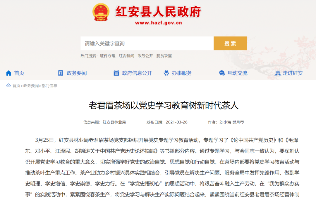 6.以二作身份在红安县人民政府官网发表新闻1篇
