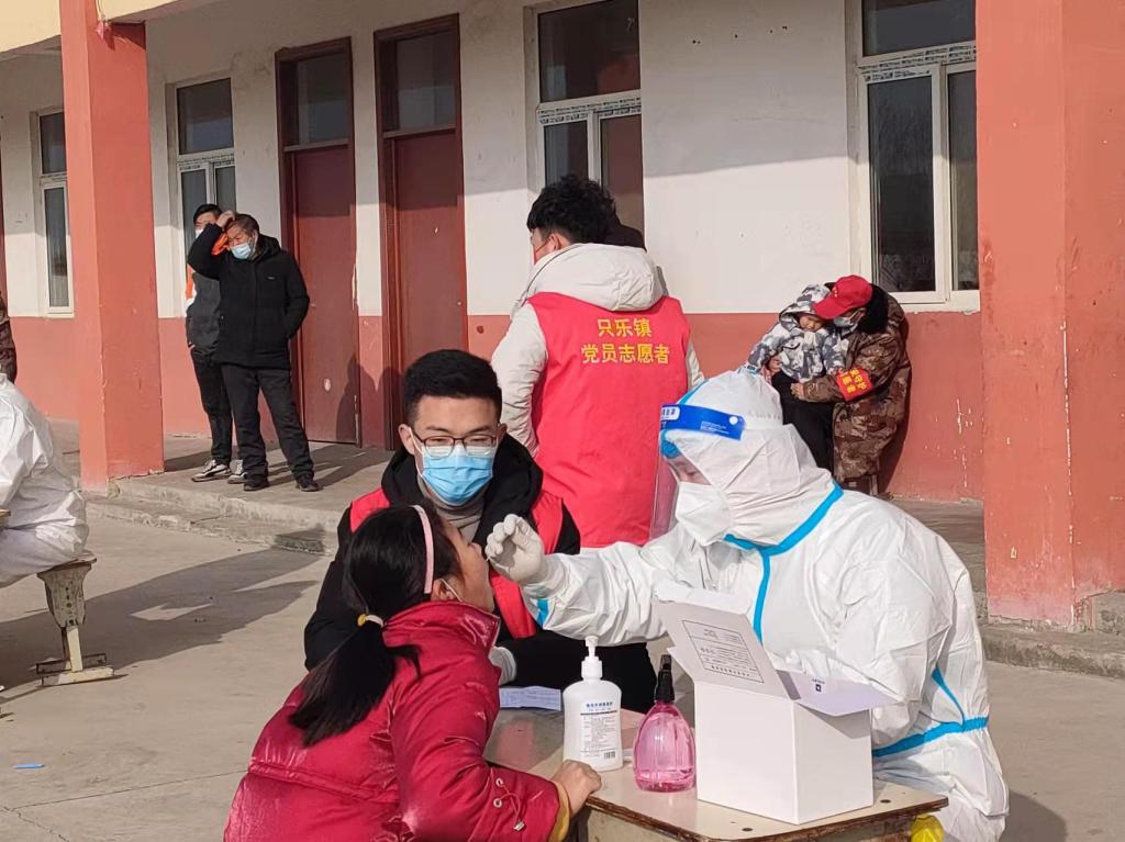 1月15日,张杨开始协助开展核酸检测工作,并于16日、17日、18日在社区的疫情防控哨点进行防控工作。“那几天返乡人员较多、秩序有点混乱,所以工作进度较慢。而且有几位行动不便的村民,我们需要挨个到他们家中进行核酸检测,花费时间较长。”当问及工作期间的困难时,张杨如是说道。除此之外,他还分享了这期间一些感人的经历。第一天协助进行核酸检测工作时,张杨早早到达现场,却看到采集核酸的医护人员已经穿着防护服在进行准备工作了;傍晚结束采集工作时,张杨发现他们的双手明显已被汗水浸得发白发皱。令张杨印象深刻的是,一位小朋友在做完核酸检测后,对他身边的医护人员说道:叔叔辛苦了!医护人员的坚守,志愿者的引导,村民的支持配合,这一切都令张杨感动不已。