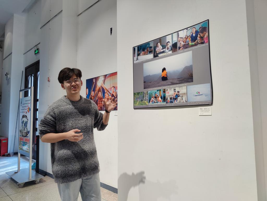 在支教的相关图片旁,我院研究生杨子萱为参展人员介绍了她在贵州支教的经历,讲述了图片背后的故事,将支教给予她的那份感动传达给在场的每一个人,她说:“山村中最美的不是星空,而是孩子们求知的眼睛。其实孩子们想要的并不多,他们最需要的是关心和爱护。”而该照片的拍摄者周子恒也为大家传授了一些摄影的小技巧,如在拍摄照片的过程中,如何根据自己的需求来调整拍摄的角度,如何构图才能让焦点更突出,以及一些色彩的搭配也会让照片更加出彩,听了他们的讲话,在场同学都受益匪浅。