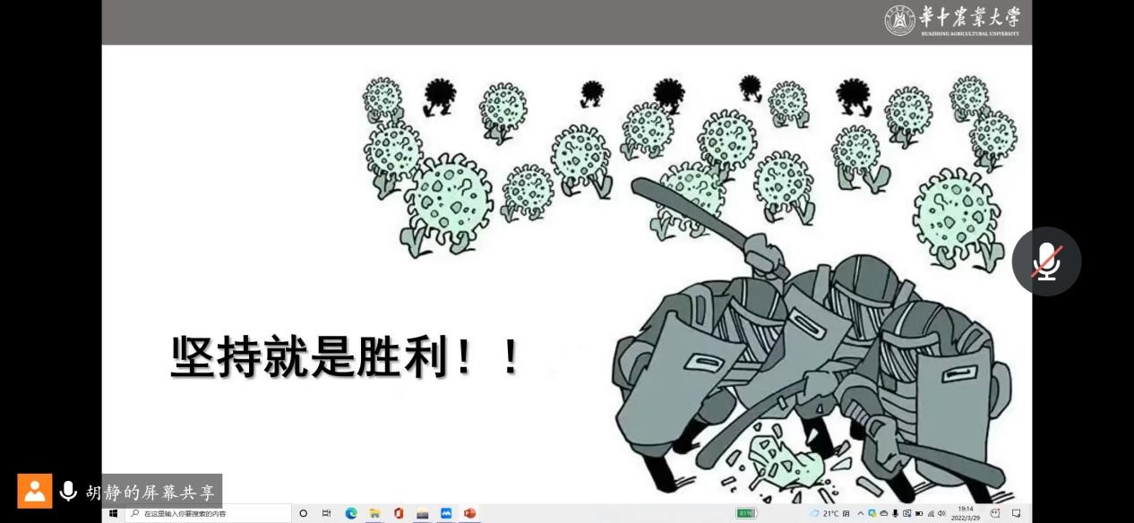 为深化防疫思想,提高对新冠病毒的认识, 3月29日,21级茶学班召开防控疫情线上主题教育班会。21级茶学班全体成员参加此次班会,班会由团支书胡静主持。