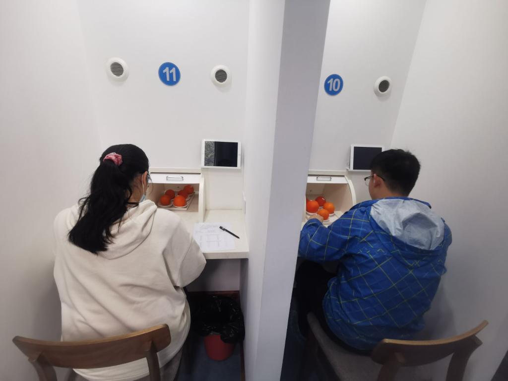 培训完毕后,志愿者们有序进入感官评价室,对24个橙子进行评价。下午17时,伴随最后一个时间段的志愿者们离开感官评价室,本次橙果实感官评价活动圆满结束。