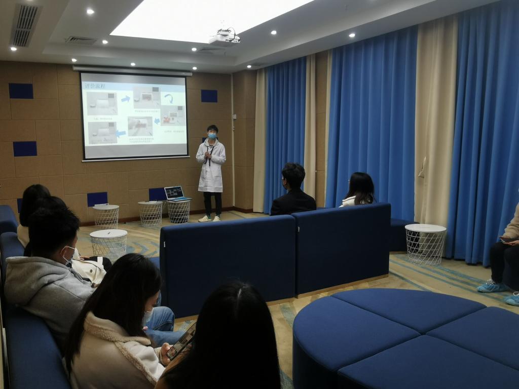 首先,活动负责人孔佳涛在培训室向志愿者简要介绍了如何通过色泽、气味、光泽、质感等方面评价橙子的新鲜度,同时讲解了整个感官评价的流程及注意事项。