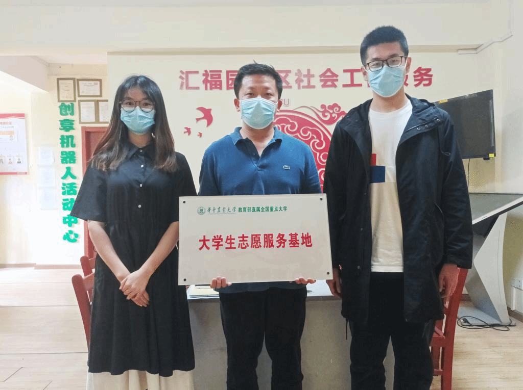 本次交流会结束后,张瑜服务队与春晓社会工作服务中心完成了ok138cn太阳集团大学生志愿服务基地的挂牌,施老师与张瑜服务队两名参会人员合影。