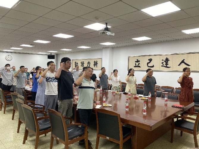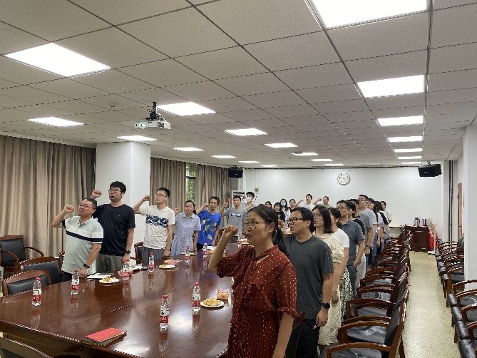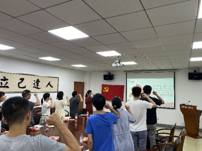 本次党日活动共包括三部分内容,即全体党员重温入党誓词;紧密围绕弘扬“坚持真理、坚守理想,践行初心、担当使命,不怕牺牲、英勇斗争,对党忠诚、不负人民”的伟大建党精神深入开展学习交流;以及师生间的答疑解惑。