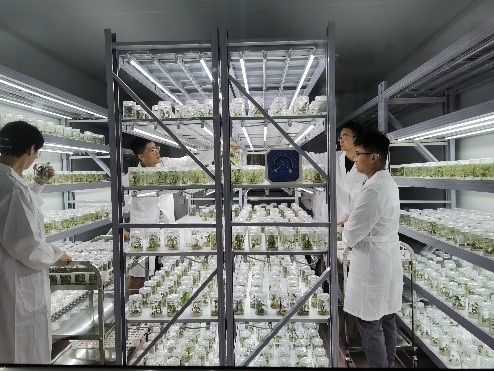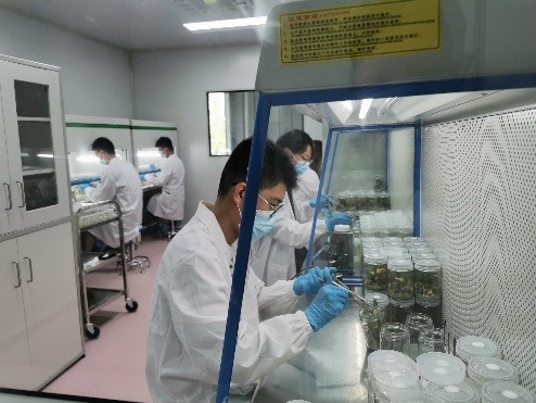 团队成员来到红安苕生物科技有限公司脱毒中心,根据自己掌握的脱毒、组培技术,帮助公司快繁600余棵无毒组培苗。