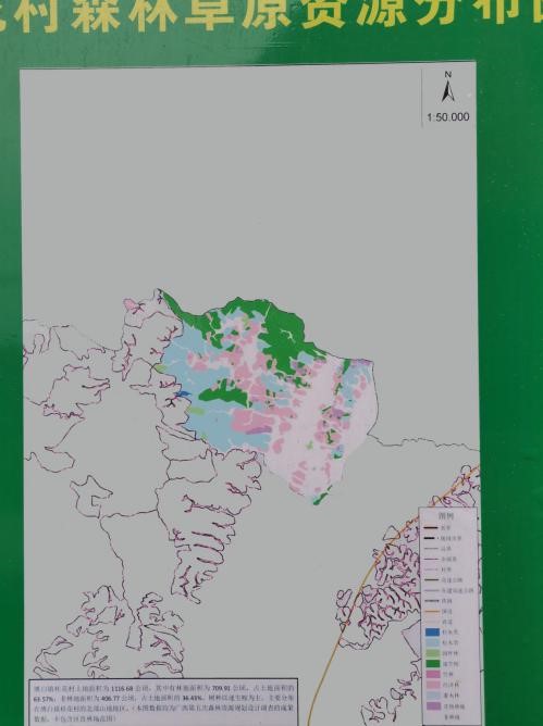 首先,实践队员郑玉英同学前往村委会对桂花村的基本情况进行了解,并在村委会的帮助下制作了桂花村边界图。桂花村地处华南热带地区,海拔高50米至210米,位于南流江畔,地形以低山和平原为主。桂花村土地面积为1116.68公顷,林地面积占比63.57%,粮食作物以水稻为主,畜牧业以生猪为主,林业以松树、杉树、桉树为主。桂花村共1407户6676人,全村辖34个村民小组,共1407户,2016年实现脱贫摘帽,全村实现贫困户38户203人脱贫。