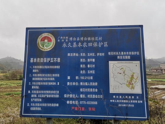 在村庄农林业景观资源上,桂花村林地面积为709.91公顷,占全村面积的63.57%,用材林树种以速生桉、马尾松,杉木为主,主要分布在博白镇桂花村的北部山地地区,经济林以荔枝、龙眼为主,其中荔枝约占山地面积的20%,规模较大,也种植有国家二级保护植物金花茶。桂花村耕地面积195公顷,其中水田170公顷,旱地25公顷,农作物主要为水稻、花生、辣椒、甘蔗等,且村内设有永久基本农田保护区。