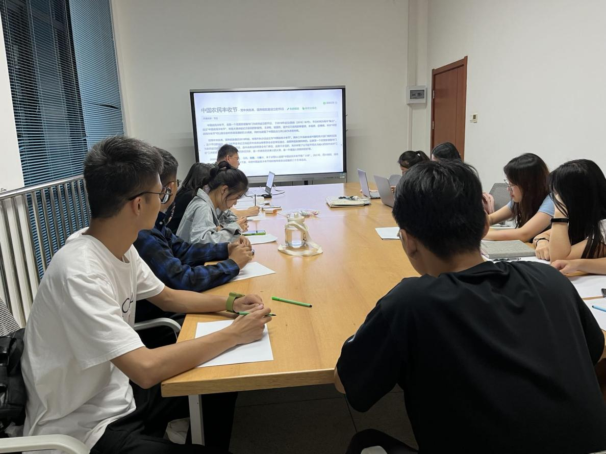 视频结束后,在肖晗老师的带领下,研究生骨干们共同学习了中国农民丰收节的设立过程和意义。肖晗老师讲到中国农民丰收节是第一个在国家层面专门为农民设立的节日;设立一个节日充分体现了以习近平同志为核心的党中央对“三农”工作的高度重视,对广大农民的深切关怀。此后,肖晗老师也对骨干们提出殷切希望:祝愿大家在研究生期间都能全力以赴、不留余力去面对工作、生活、学习上的困难,让自己有所成长,收获满满!