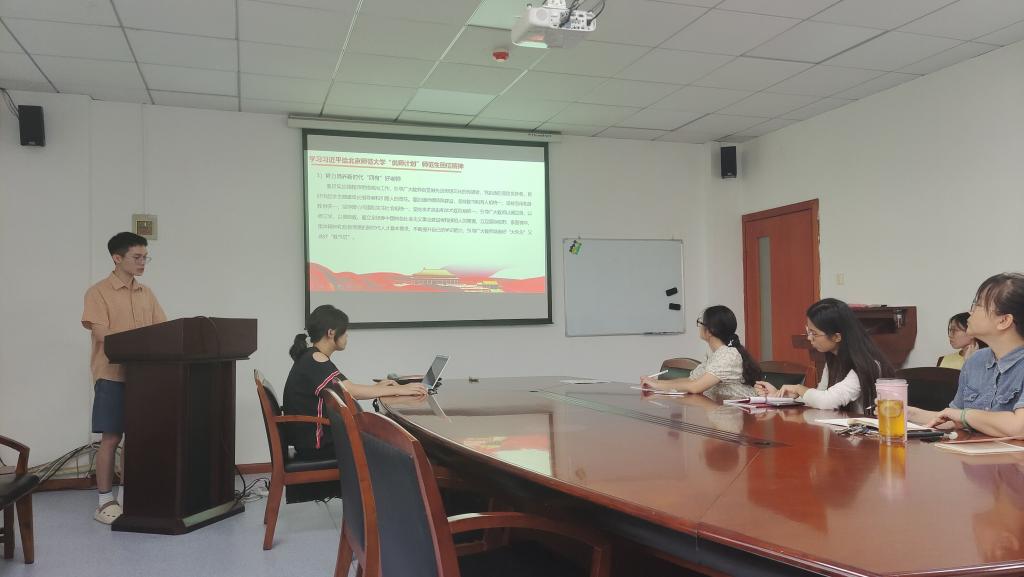 在学习活动中,党支部书记赵嘉星同志以学深悟透《习近平谈治国理政》(第四卷)以及学习习近平总书记给北京师范大学“优师计划”师范生回信精神为主题,从《习近平谈治国理政》(第四卷)的主要内容等方面进行了深入细致地解读。
