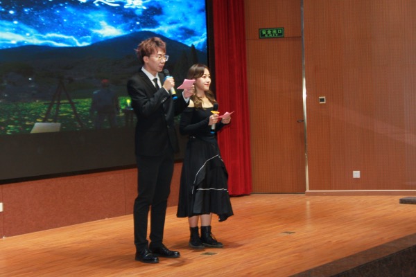 最后,辅导员郭艺佳的结会致辞为晚会画上了句号。她在致辞中表达了对新生的欢迎,并寄望大家在今后的大学生活中携手与共。本场晚会扫去了刚刚结束军训的新生的疲惫,拉近了师生间的距离。致辞完毕后,全场合影留念,晚会在欢声笑语中完满结束。