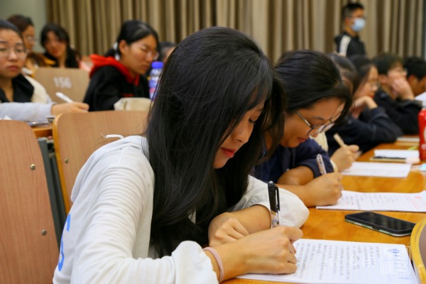 在学习团章之前,辅导员郭艺佳细致地向同学们解答了为什么学习团课、团课学什么以及怎么学团课的问题。她希望同学们能结合网络和书本、现实和历史,努力学习党团的政策方针,砥砺奋斗,称为合格的社会主义建设者和接班人。在中国共产主义青年团团章的学习部分,郭艺佳带领同学们了解团章的总则及各章节的内容,并以互动的方式加深同学们的印象。此外,她还为同学们拓展了关于入党的基本事项。