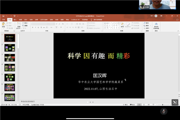 【核心提示】11月7日晚上7点,我院蔬菜系教授匡汉晖通过腾讯会议向山西省长治市第五中学的高二年级学生开展“科学因有趣而精彩”主题讲座。