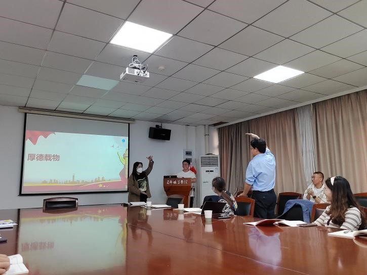 “红色导师”与支部入党积极分子共学党的二十大报告中的中国古语,采用“你比划我猜”的生动形式,增强了师生间的默契和情谊,同时更好地理解了天人合一、厚德载物、天下为公等中国古语的深层内涵。