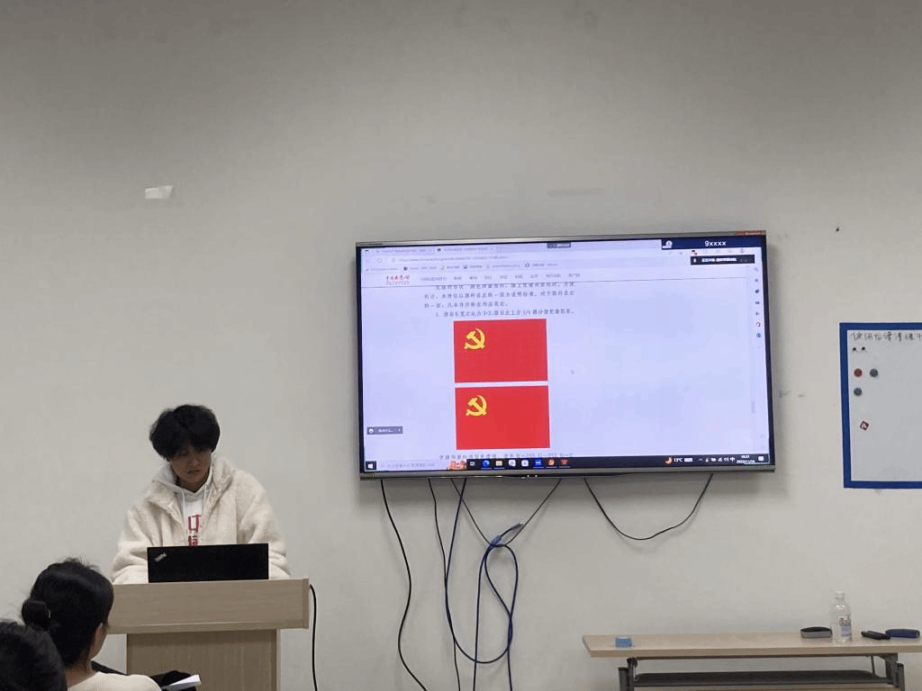 接下来,党支部书记郭诗棋同志领学了《中国共产党党徽党旗条例》,并就《中国共产党党徽党旗条例》的制定背景和意义、遵循的主要原则、主要内容等进行了解读。她强调,全体党员不仅要认真学习《中国共产党党徽党旗条例》,更要切实抓好贯彻落实。一是要坚决维护党徽党旗尊严,自觉规范使用党徽党旗及其图案。二是要牢记“一名党员就是一面旗帜”,提高政治站位,坚定理想信念,不断加强各方面知识的学习和积累,充分发挥党徽党旗的政治功能,在自己工作岗位上建功立业。