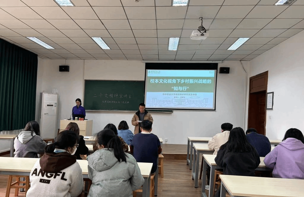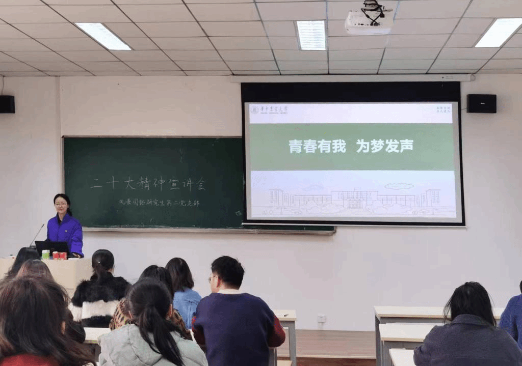 3月2日,风景园林研究生第二党支部开展了以“校本文化视角下乡村振兴战略的‘知与行’”为主题的党的二十大精神宣讲活动,活动由支部书记胡泽众主持,研究生宣讲团成员万欣怡主讲。