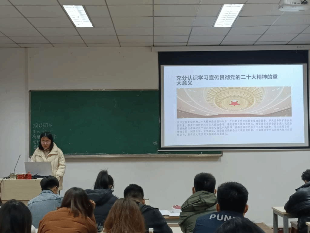 会议伊始,王熙悦同学带领大家学习2023年中央一号文件,详细分析了2023年中央一号文件明确的任务;孙长虹同学带领大家学习雷锋精神,重点学习了雷锋精神的时代内涵;张宇晗同学带领党员们学习“两会”相关内容,领会“两会”精神;胡雨琳同学带领大家加强对党的二十大精神的学习,深刻领会新时代的伟大变革。
