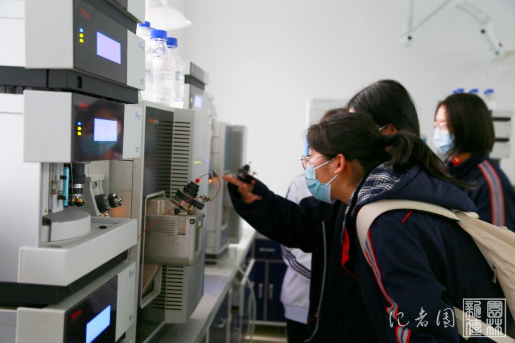 果蔬园艺作物种质创新与利用全国重点实验室是同学们最期待参观的地方,同学们对高精尖的仪器设备充满好奇。在平台张红艳和仲琳琳老师带领下,同学们边参观边交流。“有人知道‘模式植物’是什么吗?”“拟南芥!”一名同学迅速回答道,“答得很对,这里就是我们培养拟南芥的地方。”同学们的目光被吸引过来,大家聚在一起隔着玻璃仔细端详培养中的拟南芥。离开培养室,师生前往感官实验室、气调实验室参观,边走边浏览着资料墙上的园艺作物研究成果介绍。