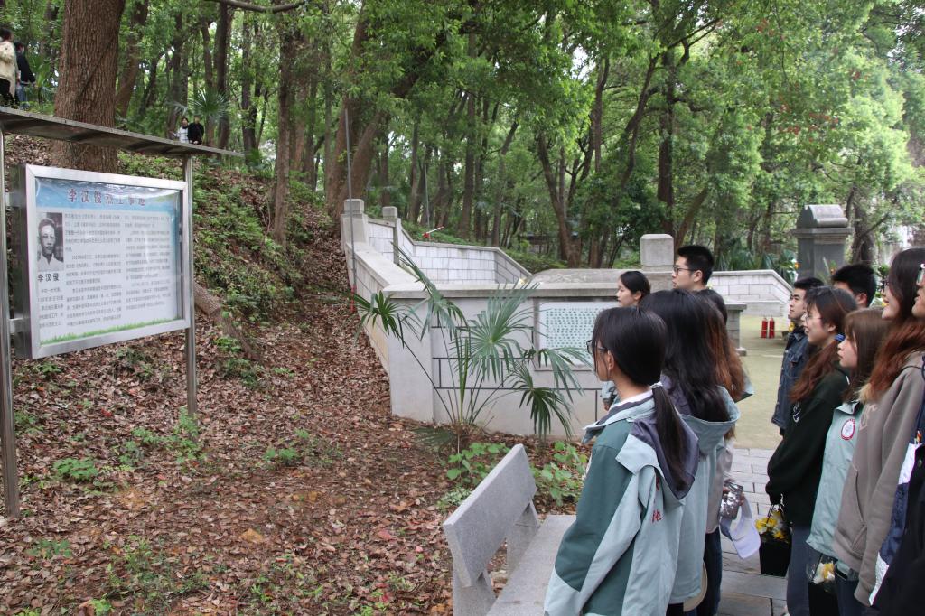 在园林北楼的耕读茶室里,同学们为祭扫活动精心准备鲜花。或黄或白的菊花,深绿银灰的配叶,一枝枝被送入花篮中,寄托着园林学子对先辈的哀思与怀念。随后,在湖北省“青马工程”学员、校青年讲师团成员董瑞琪的讲述中,同学们一起回顾历史,学习了党的一大代表李汉俊在生前推动革命运动开展的卓越成就,了解了革命党人刘静庵在宣传革命思想方面的突出贡献与其身陷囹圄倍受酷刑却宁死不屈的英勇事迹。