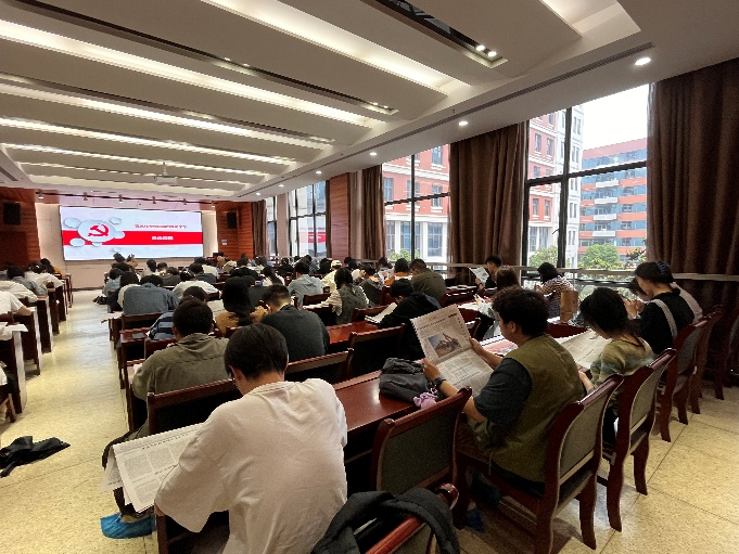 集体观看视频后,大家自由阅读了最新一期的中国教育报、人民日报等,通过阅读报纸来学习最新理论知识,了解最新时事,加强自身政治修养。