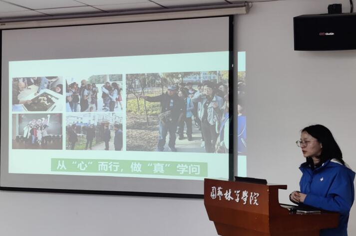 22级风景园林学硕万昕怡分享了导师张斌老师的育人故事。张老师坚持“以境启心、以情入境”的教学模式改革,萃取思政案例,将认知与情感、专业与情操综合贯穿于课程教学全过程,促成学生学习过程中专业知识与人文情怀的双升华,坚持带领研究生走村串乡,脚踏实地做学问,做研究生思想学术上的“虎妈〞,生活心灵上的“猫爸〞。