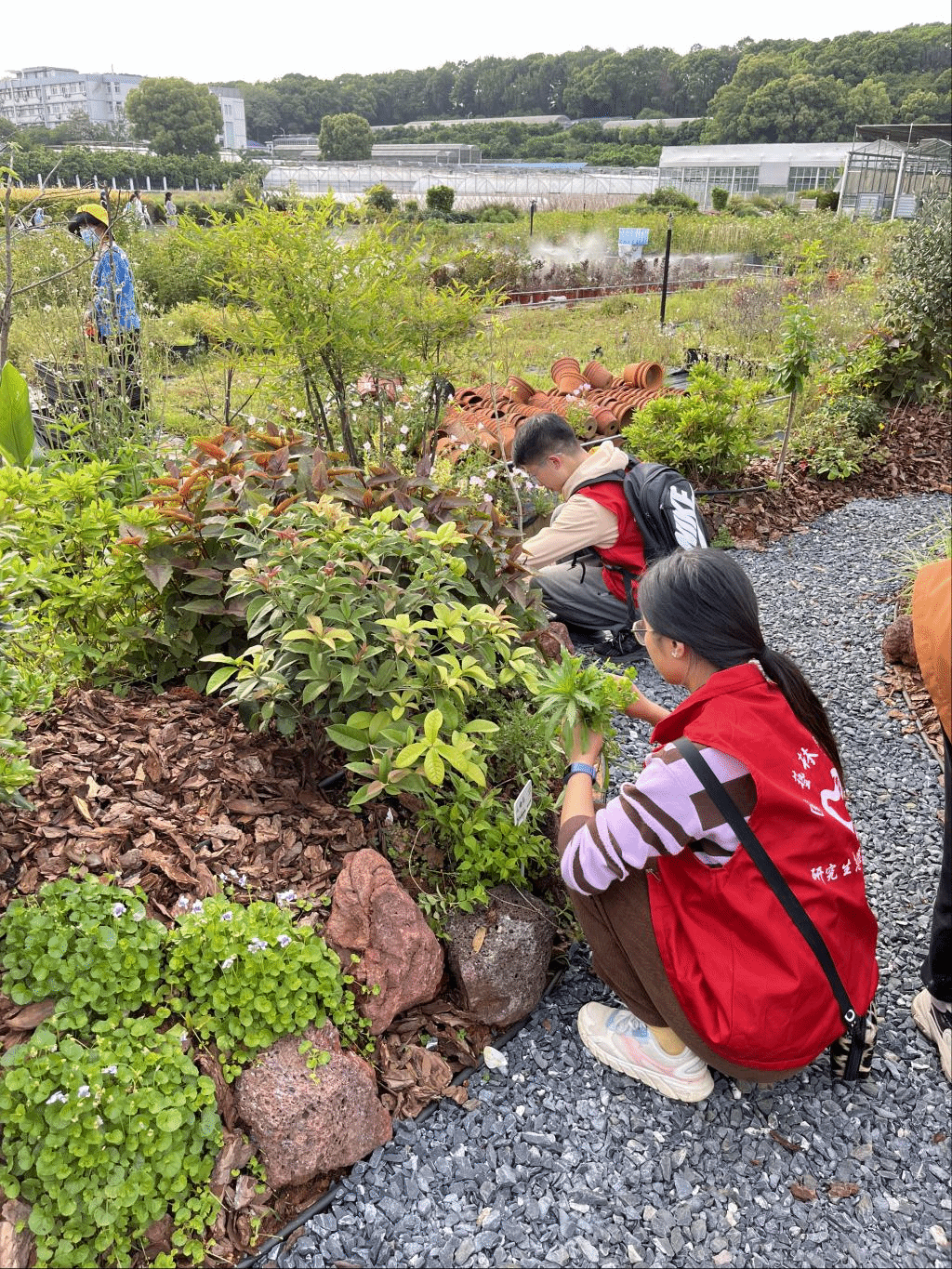 在整理花园的志愿服务岗位中,基地的花园中存在大量杂草影响花卉生长及景观观赏,志愿者们三人一组,分区划片对花园中的杂草拔除,共建美丽花园。来自林业专业的志愿者王欣表示,有些较高的杂草会严重影响到观赏植物,通过亲自动手清理看到更完美的花园,切身体会平凡劳动中的伟大,忙碌并充实着。