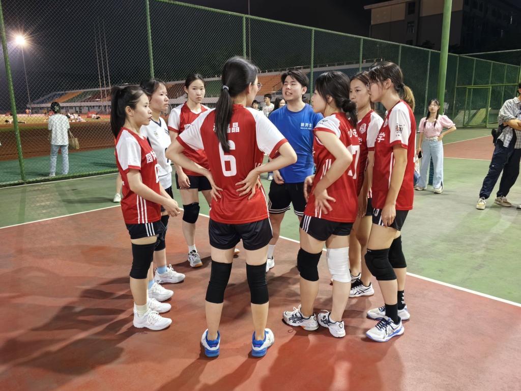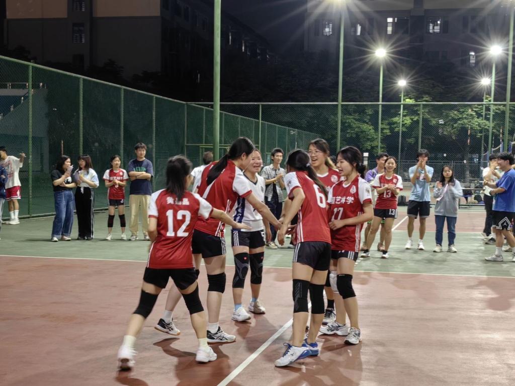 5月13日、14日,“狮子山杯”排球小组赛火热进行中。13日晚7点20分,我院女排在二运6号排球场对战资源与环境学院女排。比赛开始前,领队21级辅导员邬远生带领球员早早到场,积极热身。准备就绪后,我院运动员在边线外列队待发,在向观众挥手示意后跑至场内。随后,在队长蒙小艺的带领下,我院运动员依次与资环院运动员握手致意。鸣哨发球过后,比赛正式开始。