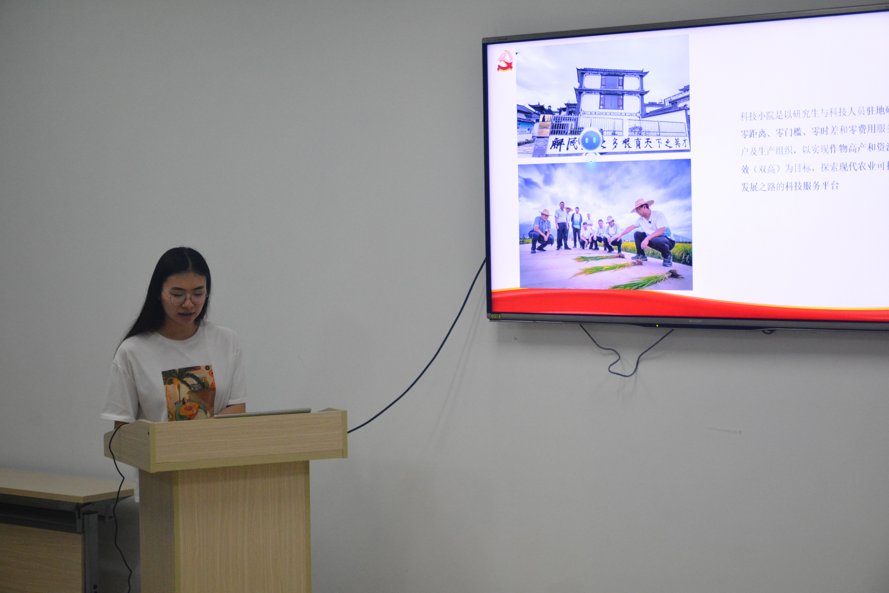 首先,张思凝同志向大家介绍了科技小院的由来,接着带领全体党支部成员学习了习近平给中国农业大学的科技小院同学的回信内容。