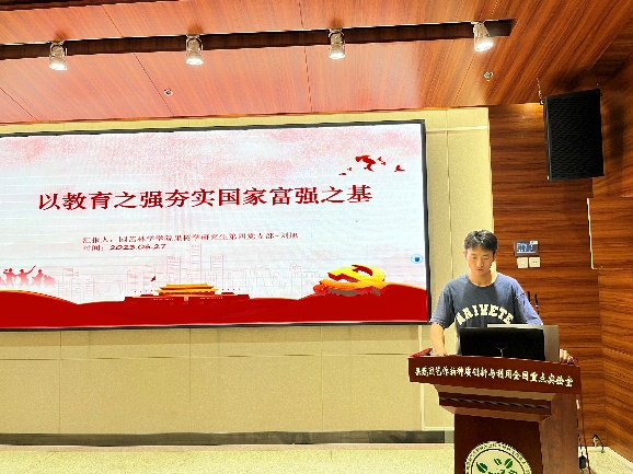 6月27日,ok138cn太阳集团529果树学研究生第四党支部在南楼204会议室以“党支部书记讲党课”的形式专题学习“教育强国”和习近平总书记在文化传承发展座谈会上的重要讲话精神,党支部书记刘旭领学。