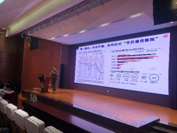 会议伊始,肖晗老师围绕“外在环境”、“内在动力”、“意识认知”、“问题思考”及“计划行动”这五个维度展开讲解。对24届毕业生的就业计划进行了阐述,为毕业生们介绍了一些与就业相关的概念及其内容,如“选调生”、“选聘生”、“科研助理”等,帮助同学们了解更多元化的就业选择,找到更广阔的就业途径。肖老师强调学历不等于能力,在求职时能力比学历更重要,要找到求职就业的内在动力,在求职过程中发挥主观能动性。同时,学院方面会建立全员就业进展与动态共享台账,清晰毕业生就业去向,并促进导师对学生就业的关切度,师生同发力,全员促就业。